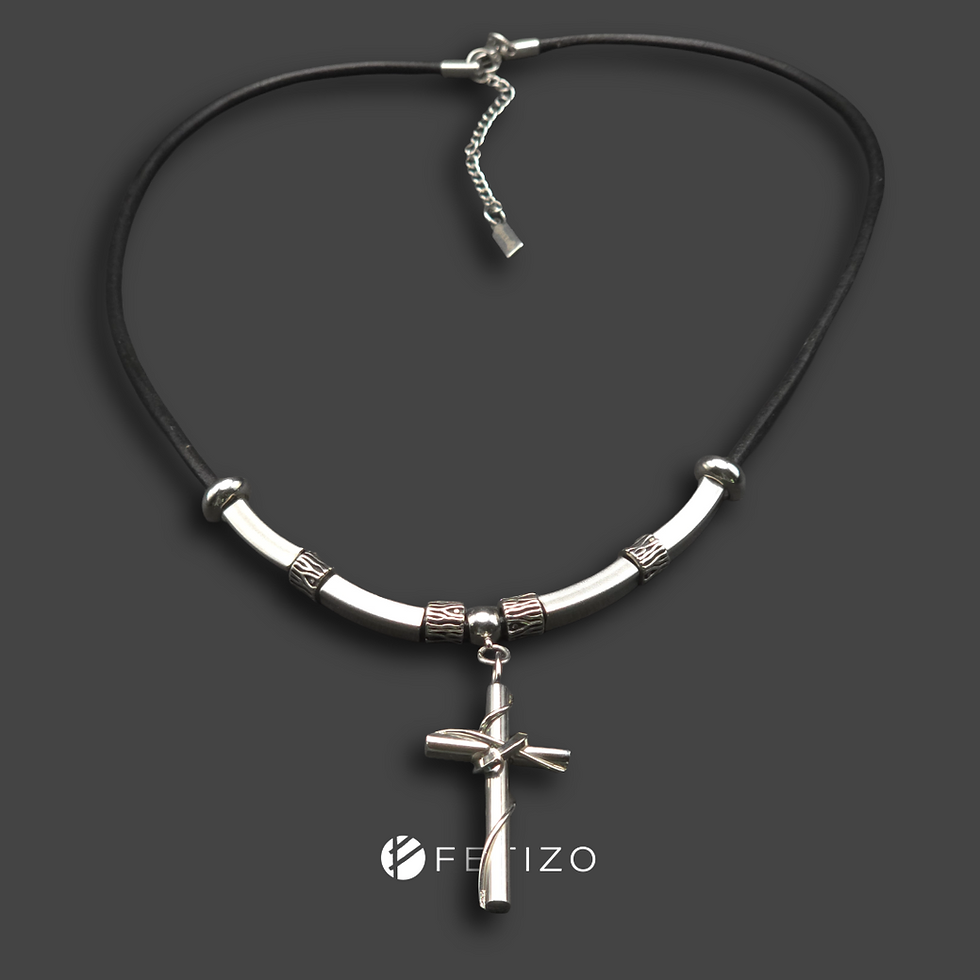Inspirado en quienes recorren el Camino de Santiago, este collar toma su nombre de Santiago de Compostela, símbolo de fortaleza, superación y determinación. Hecho en cuero con piezas de acero inoxidable, lleva una cruz de diseño único que acompaña como recordatorio de resistencia interior y propósito firme. Un accesorio creado para quienes caminan con convicción, paso a paso.